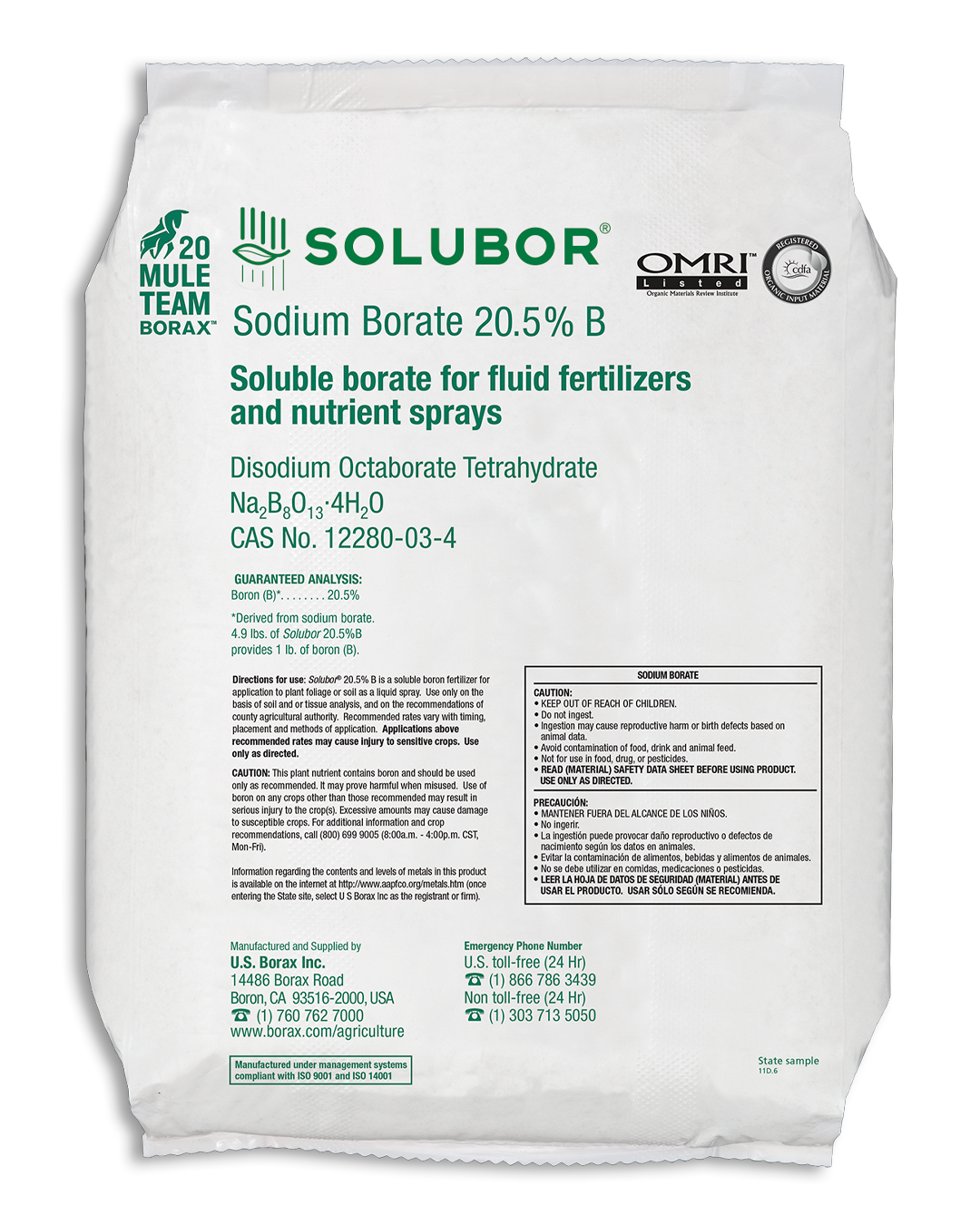 é um fertilizante de excelente solubilidade, qualidade e pureza, com elevado aporte de Boro.
